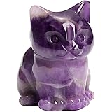 Amethyst Crystal Cat Figurine, Hand Carved Purple Gemstone Cat Statue, Mini Lucky Cat Decoration for Home Office Desk, Good Birthday and Christmas Gift