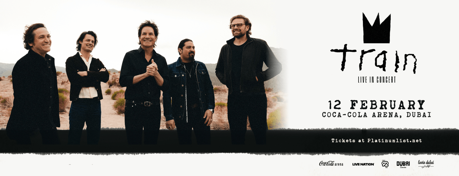 – Multi-GRAMMY Award-winning rock icons Train are set to take the stage at Coca-Cola Arena on Thursday, 12 February 2026. Presented by Live Nation Middle East, the concert will feature the band’s biggest hits, including Hey, Soul Sister, Drops of Jupiter, and Drive By, in a night that celebrates over two decades of timeless music. Hailing from San Francisco, Train has sold more than 10 million albums and 30 million tracks worldwide, earning three GRAMMY Awards and a place among modern rock’s most enduring acts. Known for their infectious energy, heartfelt lyrics, and sing-along anthems, the band continues to inspire fans across generations. Dubai audiences can expect an evening of powerful performances, nostalgic moments, and chart-topping hits from one of America’s most beloved rock bands. Train Live at Coca-Cola Arena at Coca-Cola Arena, Dubai, United Arab Emirates events Concerts Coca-Cola Arena Train